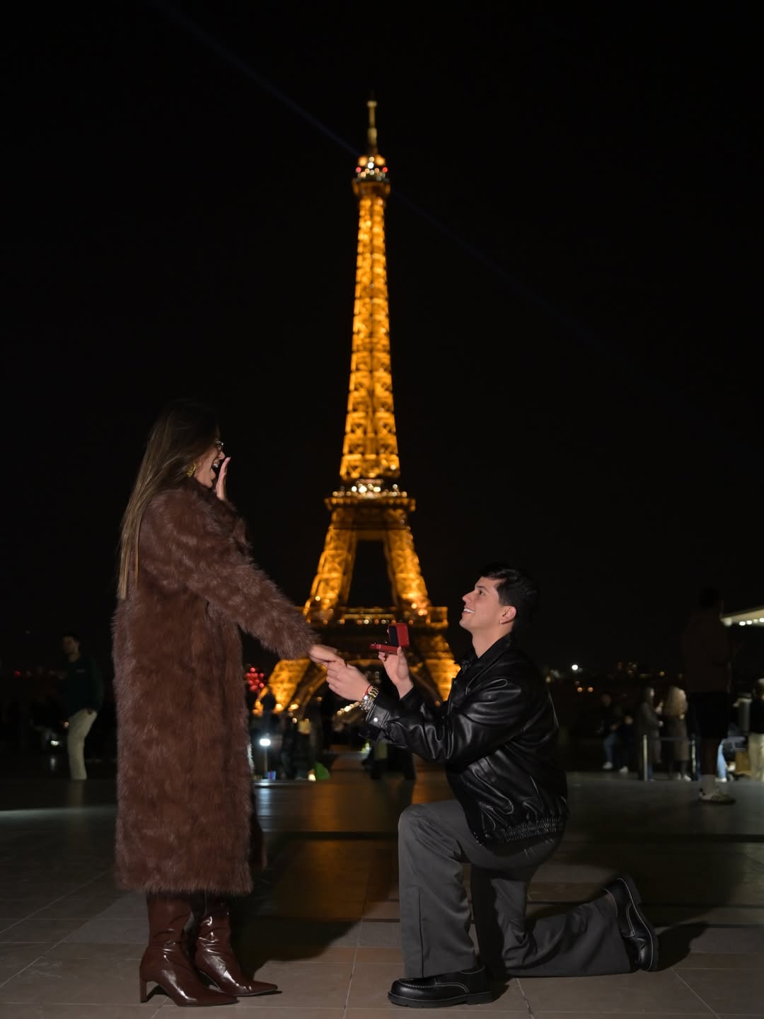 "Eu não poderia passar meu aniversário de forma melhor se não fosse desse jeito. Eu falei que um dia viveríamos tudo isso que estamos vivendo hoje, e obrigado por confiar em mim e nas minhas decisões. Vir à França era um sonho nosso, e graças a Deus Ele fez com que tudo acontecesse como sonhamos. Hoje eu passo o melhor aniversário da minha vida ao seu lado, e não teria presente melhor do que te pedir em noivado e ouvir o SIM da sua boca. Obrigado por sempre estar comigo, meu amor. Você é meu sonho realizado! Minha duplinha de sala de aula, minha eterna namorada e hoje, MINHA NOIVA. Me emociono todas as vezes que conquistamos algo. Sempre me lembro de onde viemos e onde estamos. Obrigado por fazer parte da minha vida. Eu te amo, princesa", publicou Léo.